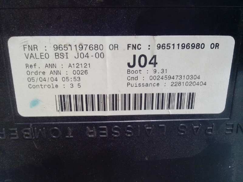 CAJA RELES / FUSIBLES PEUGEOT 307 1.6 16V version 2001 -> 2005 Id. 74530 / 9651196980 9651197680 VALEO BSI J04